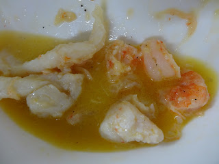 I'll start with a super simple scampi that I made in Honduras. We had found a seafood sampler package in the fresh meat section at Price Mart (a Costco like store) in Honduras. It contained shrimp, mussels, octopus, white fish, and imitation crab. I was told to discard the crab. I combined the shrimp and white fish into one dish and the octopus and mussels into another.